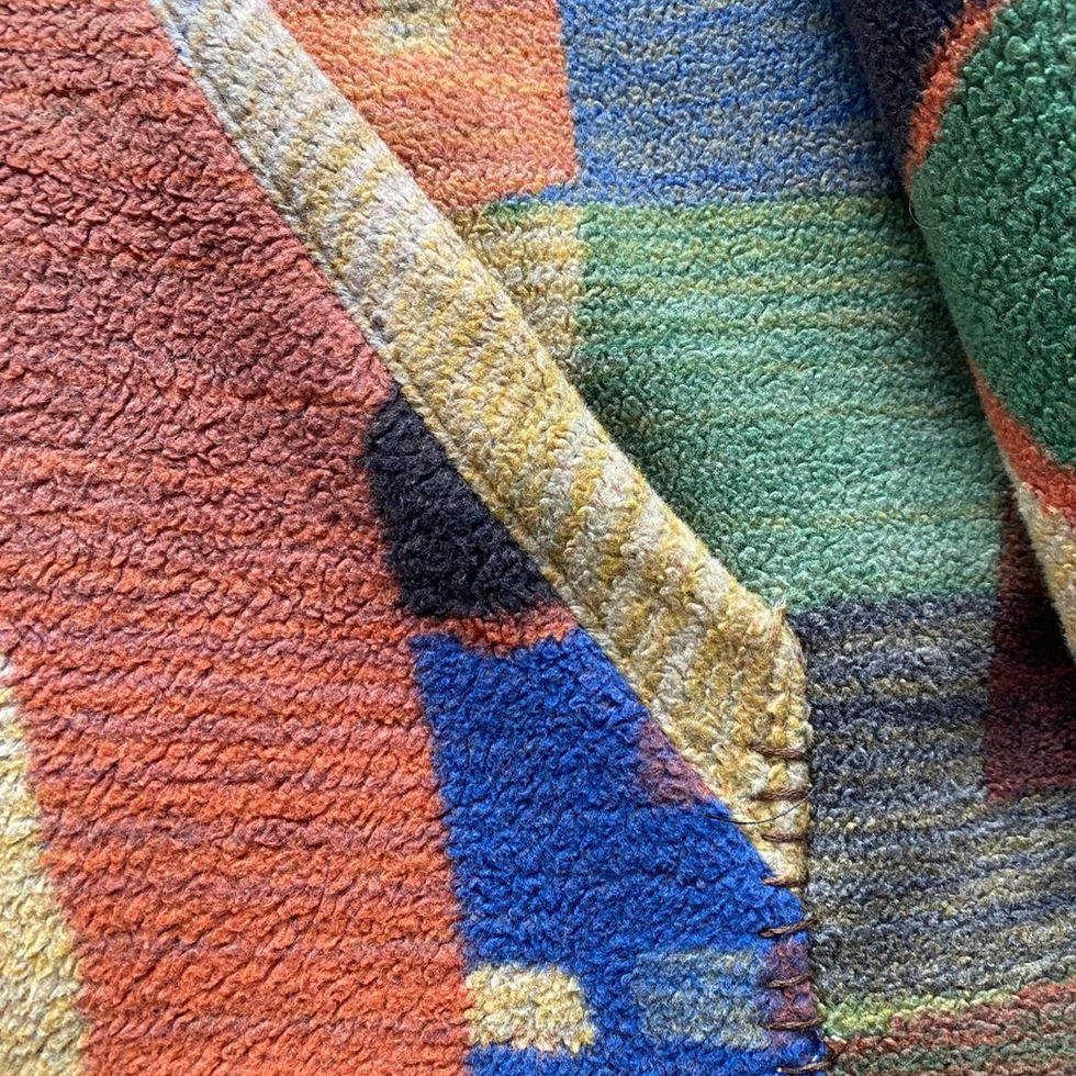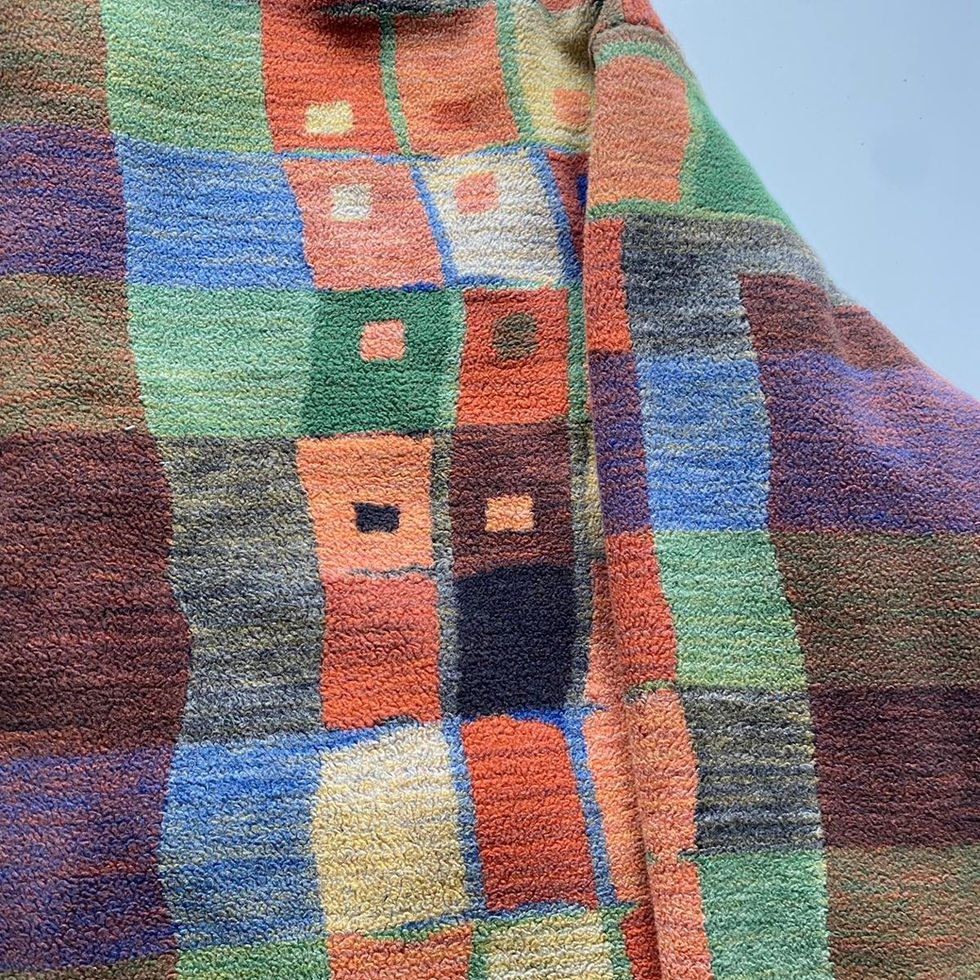 Diese Jacke ist ein echtes Einzelstück – handgefertigt aus einer Decke und zu neuem Leben erweckt. Das auffällige Patchwork-Design verbindet verschiedene Farbfelder und Texturen zu einem harmonischen Gesamtkunstwerk.