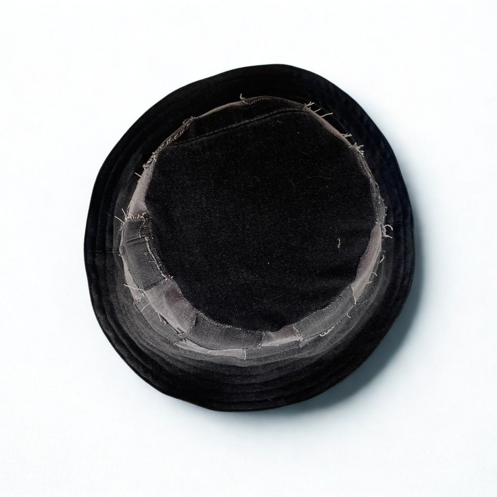 Dieser einzigartige Bucket Hat wurde aus upgecycelten Jeansstoffen gefertigt und ist das perfekte Statement-Piece für warme Tage.